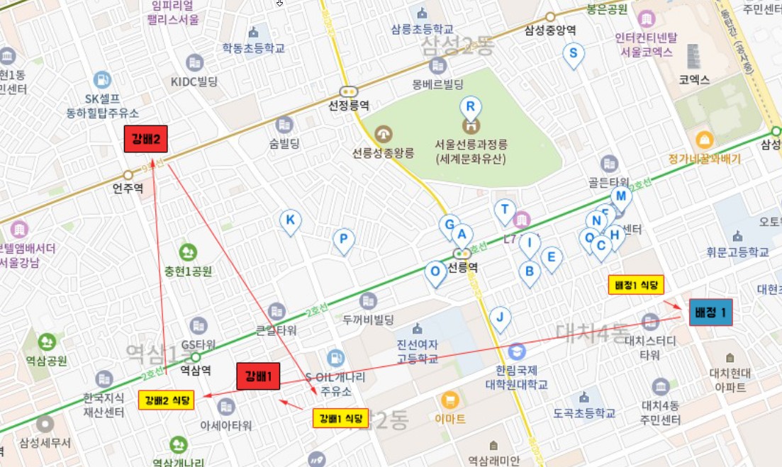 여기에 변수를 더해볼까? 강배2 식당이 그날 너무 바뻐서 갔더니 음식이 아직 안 나왔어. 10분 정도 늦는다 그러면 양해를 구하고 강배1이라도 처리하러 갈 수 있지.